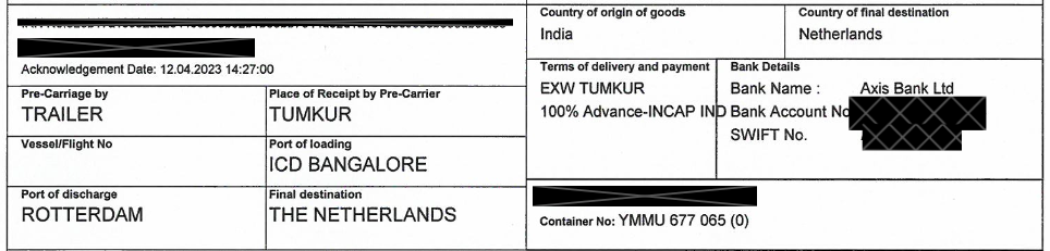 Bank details are redacted from the sample output.